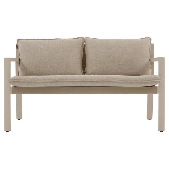 Siedziska zostały wykonane z texaline – elastycznej i odpornej tkaniny, która doskonale współpracuje z miękkimi, teksturowanymi poduszkami. Stolik kawowy z wyrafinowanym wykończeniem blatu to idealne miejsce na letnie drinki i przekąski podczas wspólnych chwil z bliskimi.