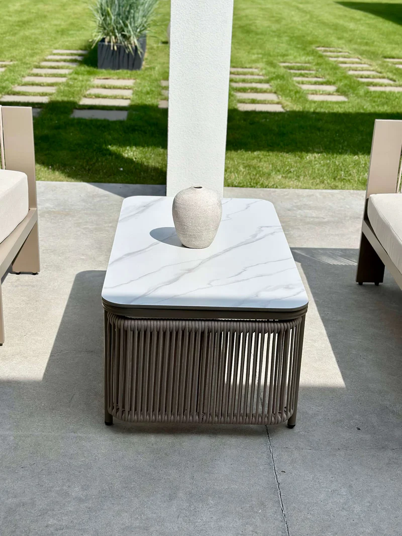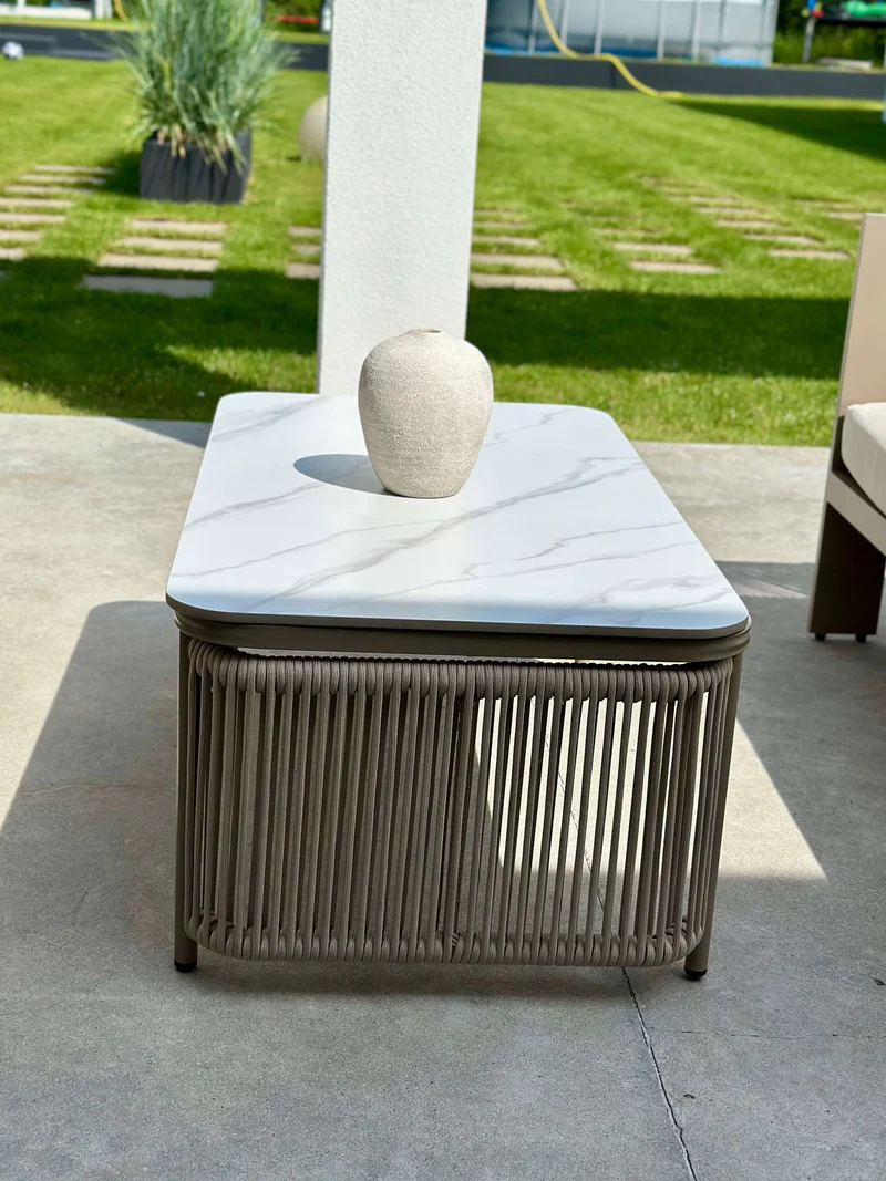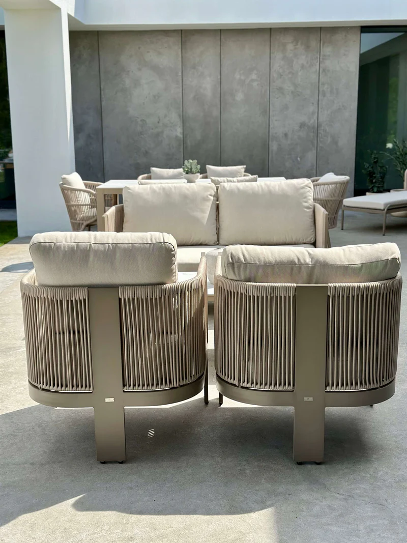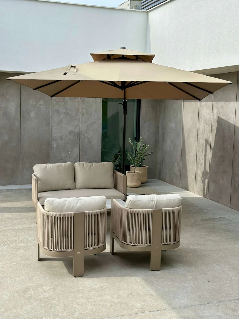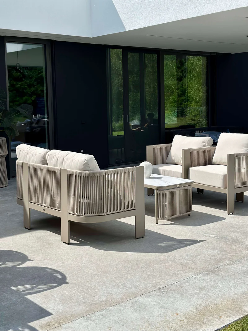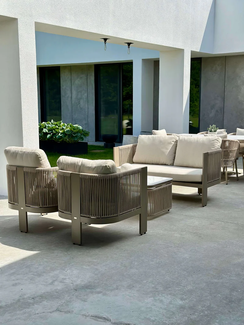Wprowadź odrobinę luksusu do swojej przestrzeni zewnętrznej dzięki zestawowi ogrodowemu LEONE IV w kolorze szampańskim. To harmonijne połączenie nowoczesnego designu, wysokiej jakości materiałów i pełnego komfortu – idealne na taras, balkon lub do ogrodu.