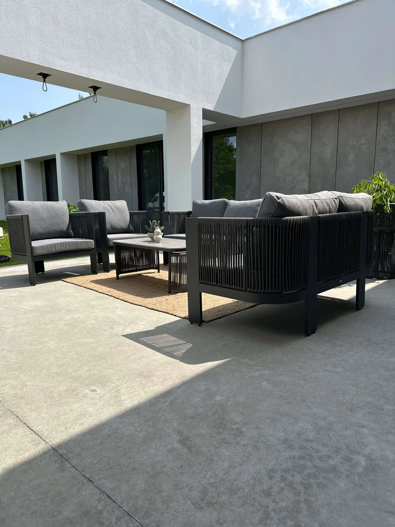 Zestaw mebli aluminiowych LEONE VI to kompletne rozwiązanie dla osób pragnących stworzyć przestronną i luksusową strefę wypoczynku na świeżym powietrzu. Połączenie minimalistycznego designu, stonowanej szarości oraz najwyższej jakości materiałów sprawia, że zestaw ten doskonale odnajdzie się zarówno w nowoczesnych, jak i klasycznych aranżacjach tarasów oraz dużych ogrodów.