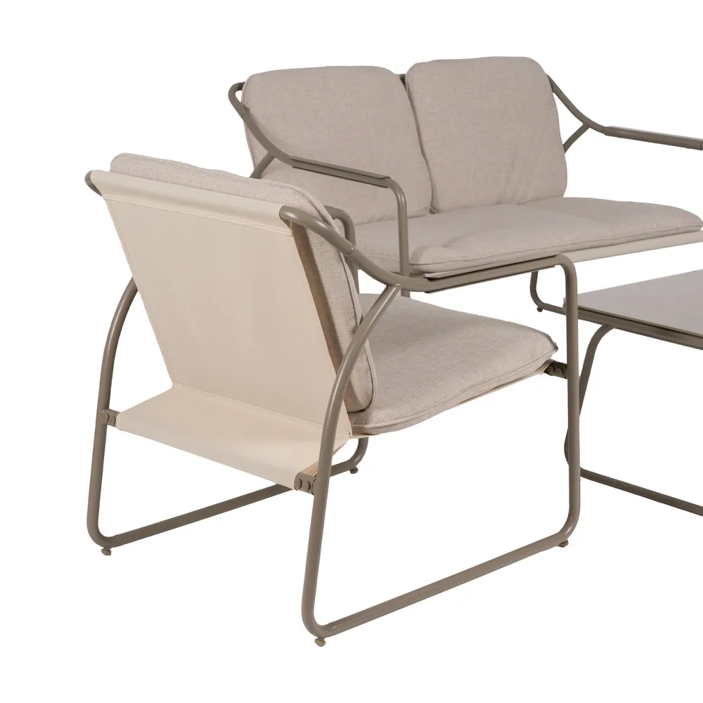 Elegancki i funkcjonalny zestaw ogrodowy, który łączy solidną stalową konstrukcję, wygodne poduszki z tkaniny olefinowej oraz stolik z hartowanym szkłem. Idealny na taras, balkon czy do ogrodu – zapewnia komfort i styl w każdej przestrzeni zewnętrznej.