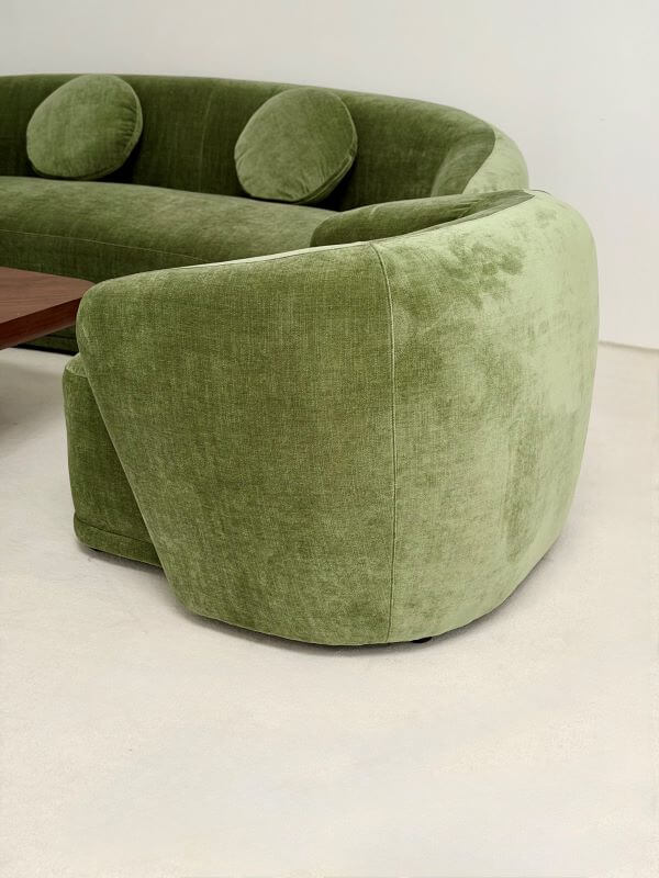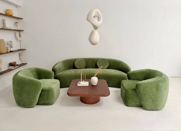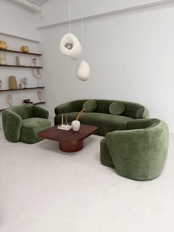 Charakterystyczny, elegancki odcień zielonej tapicerki działa jak wyrafinowany, ponadczasowy akcent. Miękkie, obłe linie mebli Amarone Vita łagodzą geometryczną surowość, nadając całości lekkości i współczesnej, designerskiej formy. Zestaw ten z łatwością komponuje się zarówno w minimalistycznych, nowoczesnych aranżacjach, jak i w eleganckich wnętrzach w stylu klasycznym.