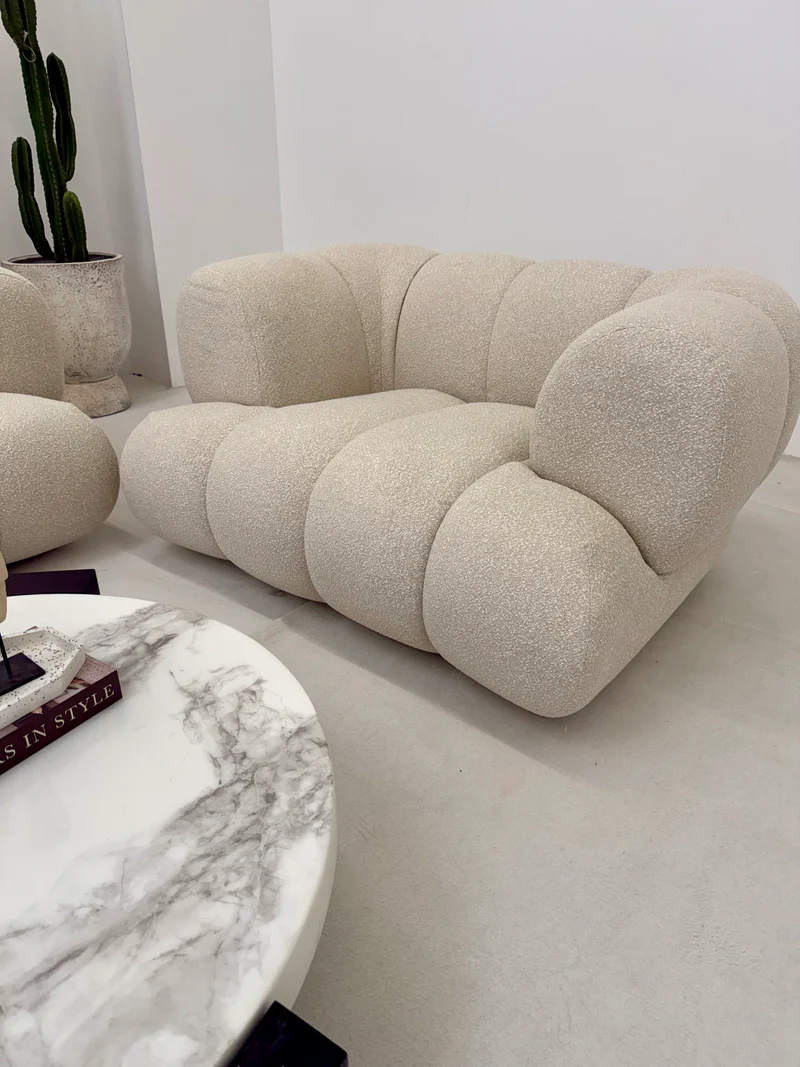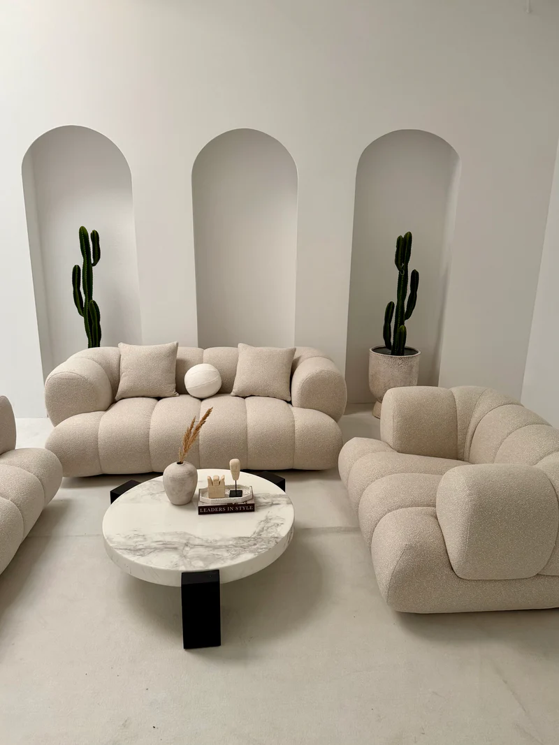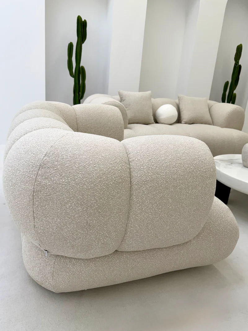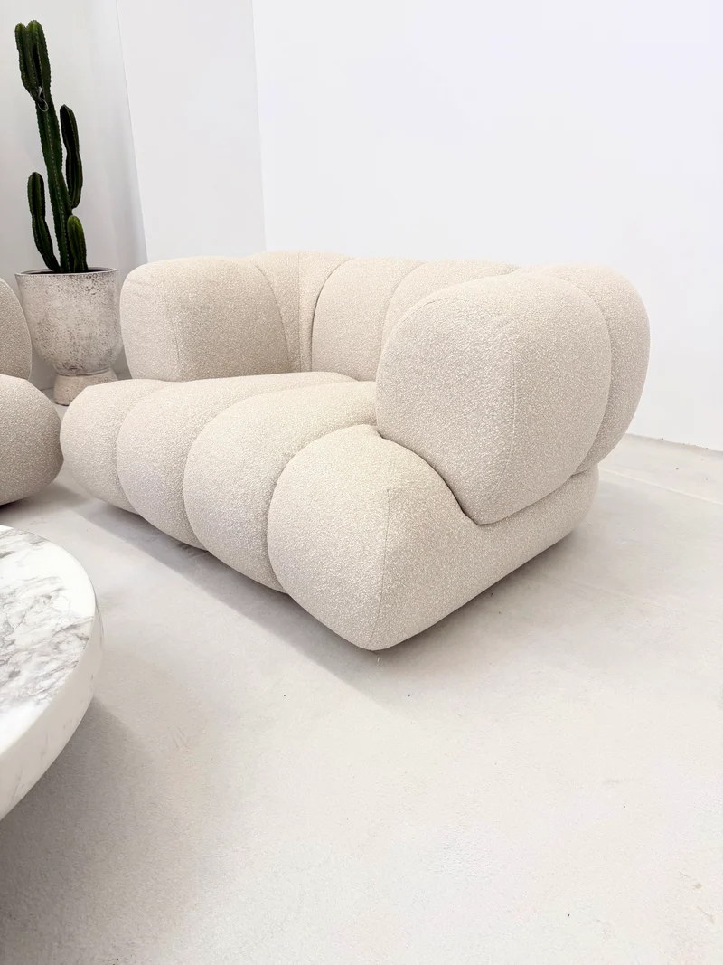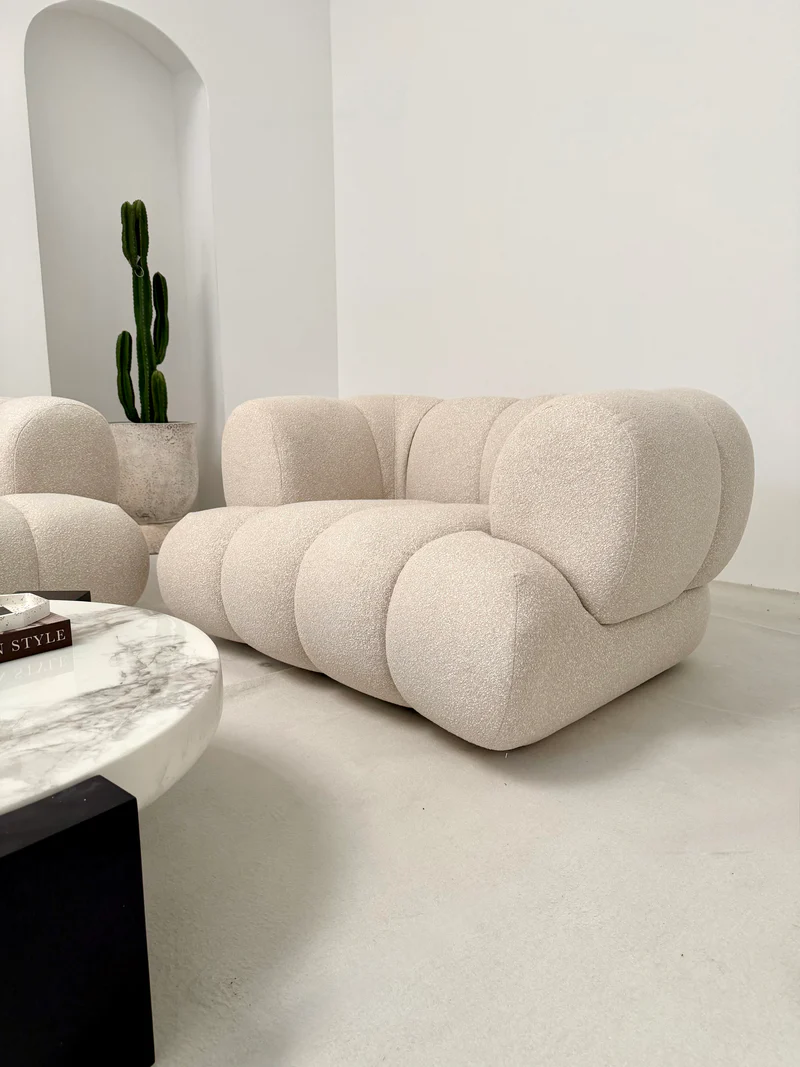 Kolekcja Lunario to kwintesencja luksusu i nowoczesnego designu. Ten dwuosobowy zestaw, składający się z sofy i fotela, wprowadza do wnętrza miękkie, zaokrąglone kształty i wyrafinowaną elegancję. Karmelowa tapicerka nadaje meblom wyjątkowego ciepła, tworząc komfortową i przytulną przestrzeń do wypoczynku.