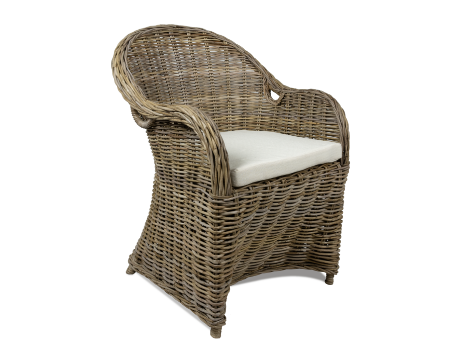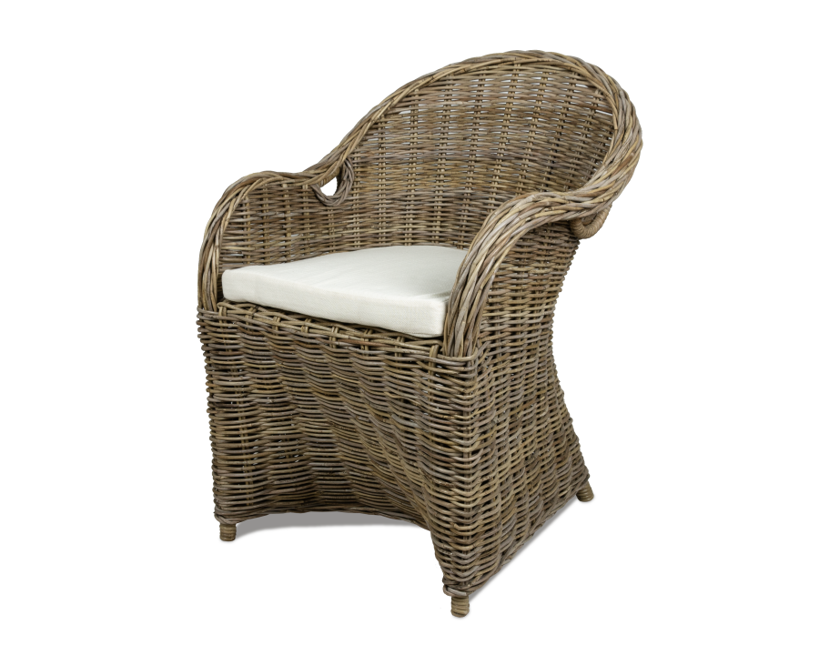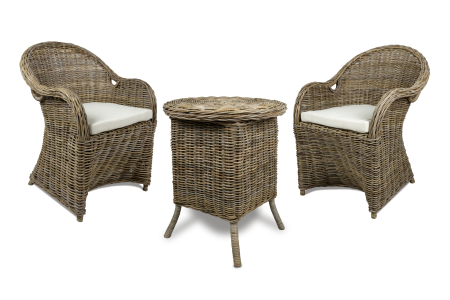 Elegancki zestaw wypoczynkowy z naturalnego rattanu. Wygodne fotele z poduchami na siedziska gwarantują relaks, a wysoki stół pozwala na miłe spędzenie czasu przy posiłkach w ogrodzie czy na tarasie.