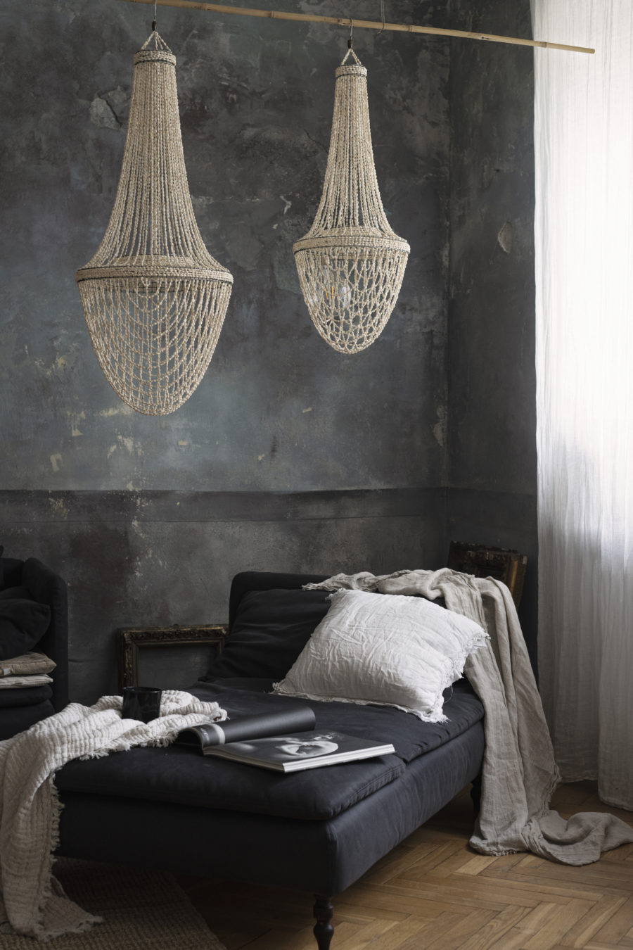Delikatny, a zarazem efektowny żyrandol z muszelek z indonezyjskich wód to wyjątkowy sposób, by wprowadzić do wnętrza morski klimat. Subtelna konstrukcja nie tylko pięknie rozprasza światło, ale też nadaje przestrzeni niepowtarzalny charakter. Doskonale sprawdzi się w wielu pomieszczeniach – od łazienki i sypialni, po salon czy przedpokój – zwłaszcza w aranżacjach w stylu boho, etno lub naturalnym.