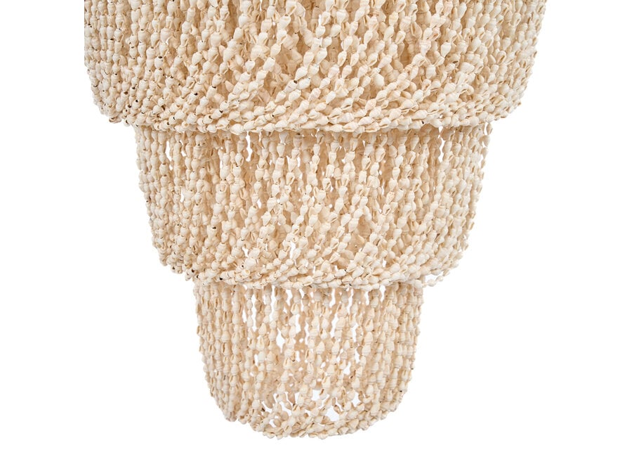 Żyrandol The Lagoon w rozmiarze M to wyjątkowy akcent świetlny, który łączy warstwy kaskadowo opadających muszli ze zrównoważonym designem, wprowadzając do wnętrza nadmorską elegancję i delikatny blask.